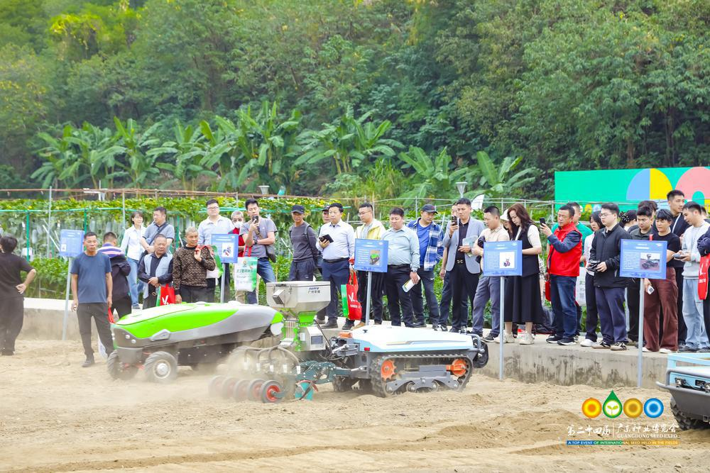 在由广东省农业农村厅主办的第二十四届广东种业博览会(以下简称“种博会”)上,各路“机器农民”田间比武,鲜食玉米收获机、种苗高速嫁接机、“耕种管收”全系列农机……广东的“粤强农装”拿出了一个包罗万象的智慧农业解决方案。
